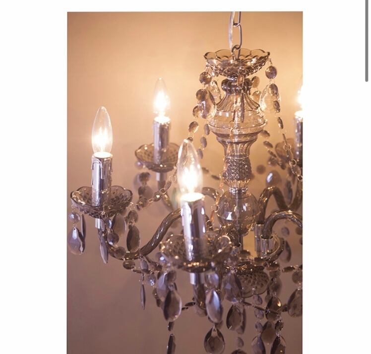 LED電球対応で軽量ながら上品な美しさがある5灯のシャンデリアです。