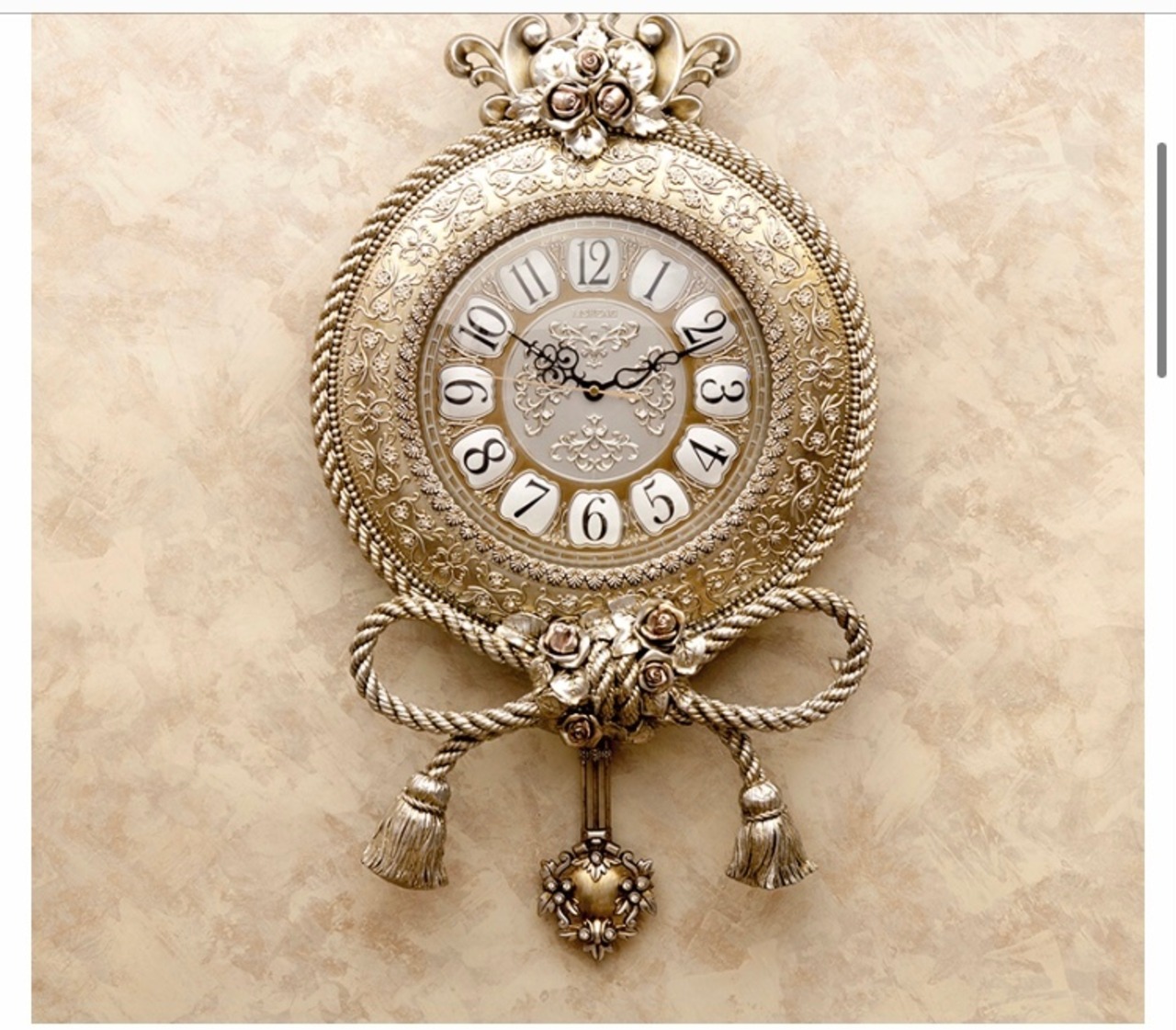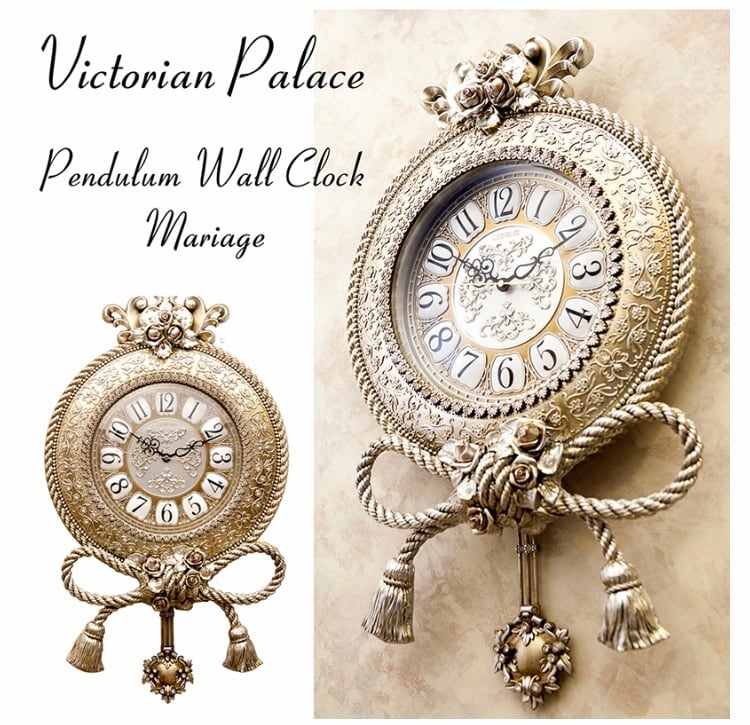 薔薇と化粧縄のモチーフにペンデュラム・振り子がとってもお洒落な壁掛け時計。